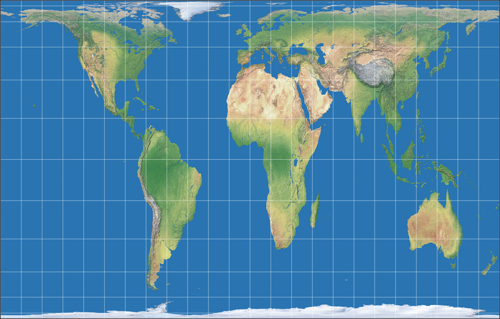 Gerçeğine en yakın ölçeklendirilmiş 2 boyutlu dünya haritası Peters Gall Projeksiyonudur ama bu haritada bile göze çarpan hatalar vardır zira Antartika orantsızı bir büyüklükte ve Güneyin tamamını kaplamaktadır.